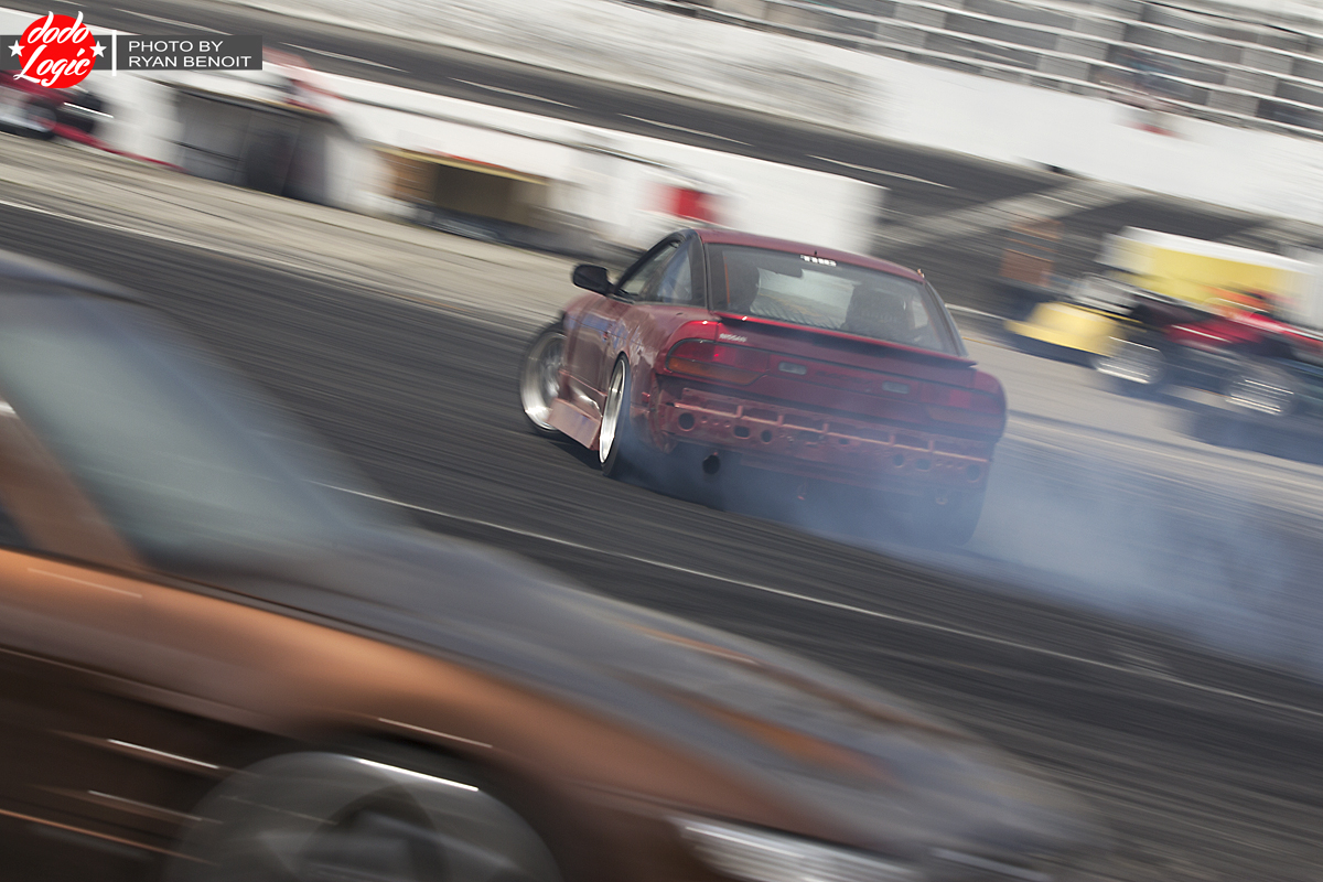 Here’s the kicker though – you or someone you know might hear how unreal this event is and decide it’s time to drive in next year’s DUI event. Now before you get your team name and possible colour all picked out, remember this is an invitational and not a free-for-all. In no way is this meant to sound elitist, but part of attending DUI is about earning your stripes. It’s something to work for or towards; it’s not a place to cut your teeth or test the waters as far as your skills go. If you’re new to drifting and want to drive in the event, I recommend waiting a few years before you make the leap. Otherwise you might find yourself sandwiched in a drift train that you’re just not ready for.