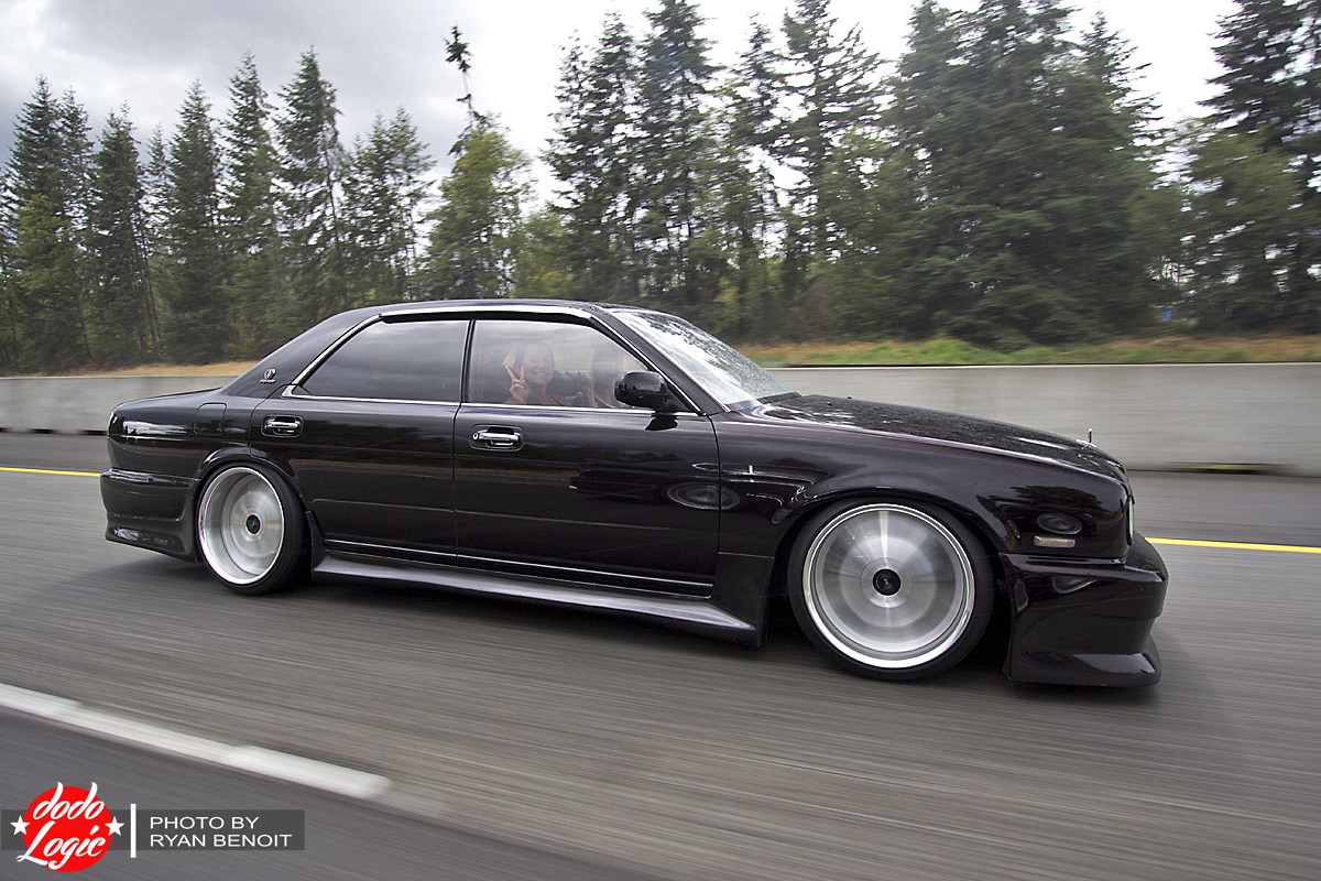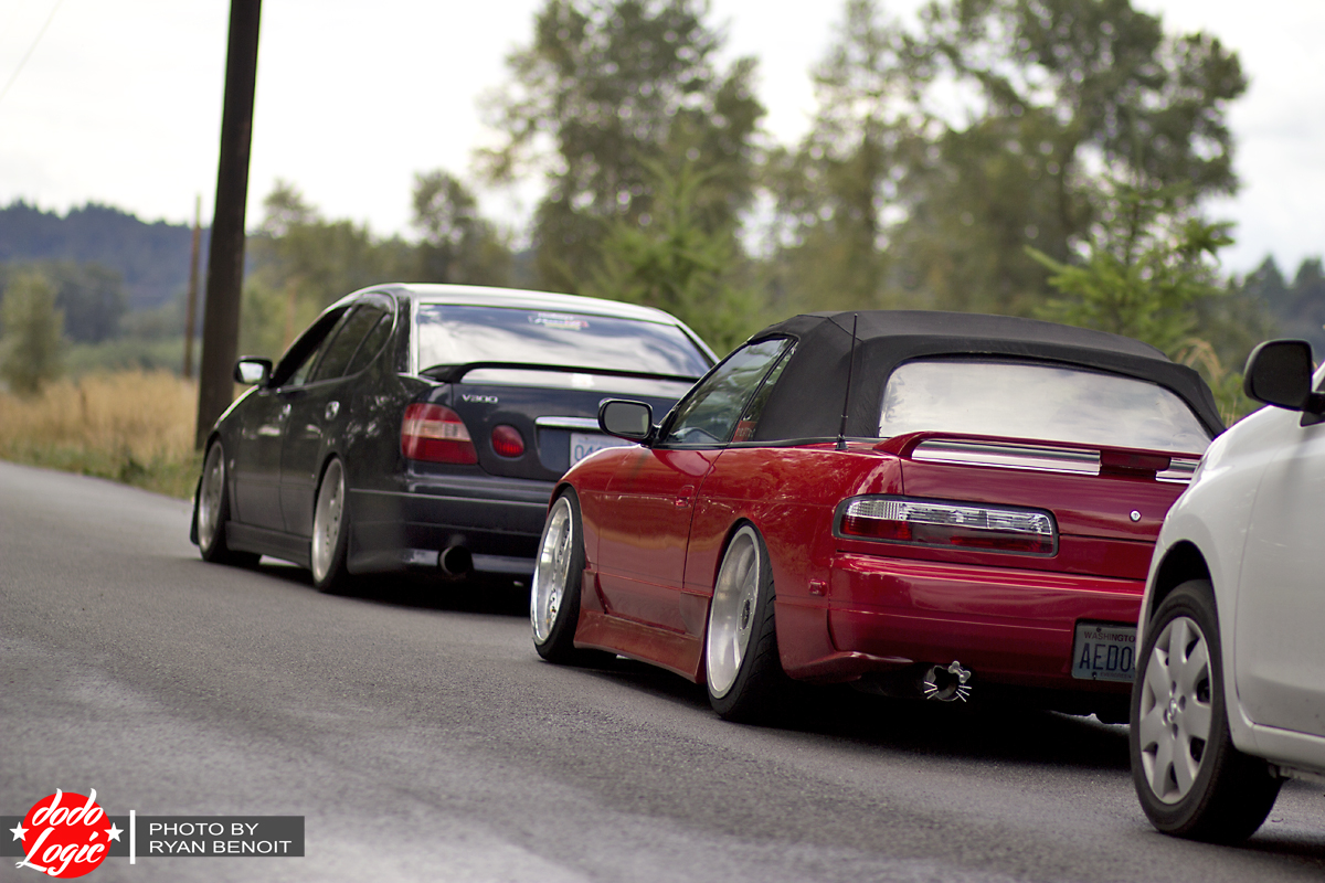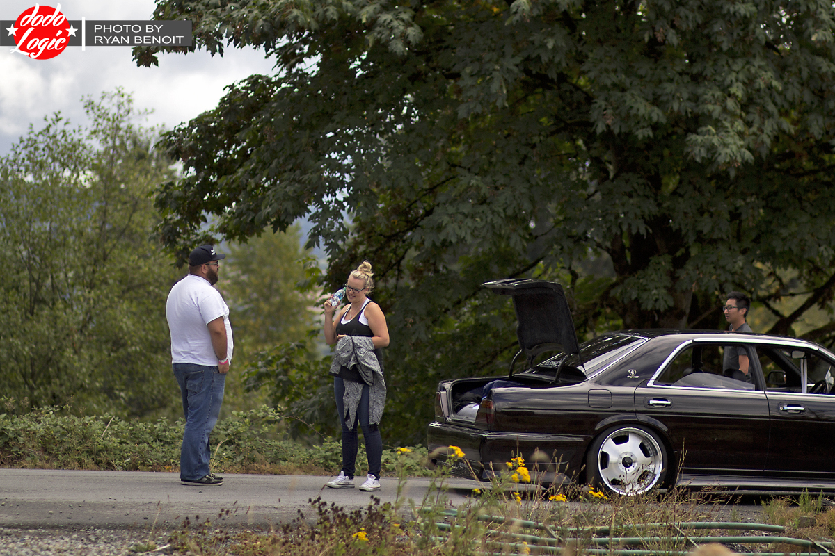 Sunday-12The Friday we arrived was filled with the usual Seattle car hangs, which was great, but the night ended in the wee hours of the morning with one our American friends visiting the E.R. Thankfully everything worked out in the end, but it wasn’t ideal. Saturday was filled with drifting and cool car shows, but ultimately ended with me “board sliding” my Aristo over a hard-to-see meridian in Monroe. This little incident left me with a bent wheel and a slow leak.