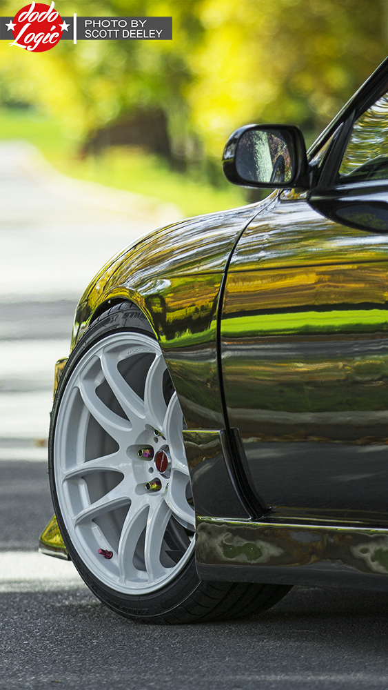 In a land where more and more people are saying “no” to the paint job and “yes” to the vinyl wrap, Anthony’s Kouki S14 is one of the very few (around here at least) that shows off paint’s ability to shine and sets itself apart from the rest. Don’t get me wrong – I love the idea of vinyl and when it’s done right, it’s hard to tell if it’s paint or not. Plus, it makes perfect sense if you’re going to be tracking your car. However, there really is no real replacement for paint when dealing with aesthetics.